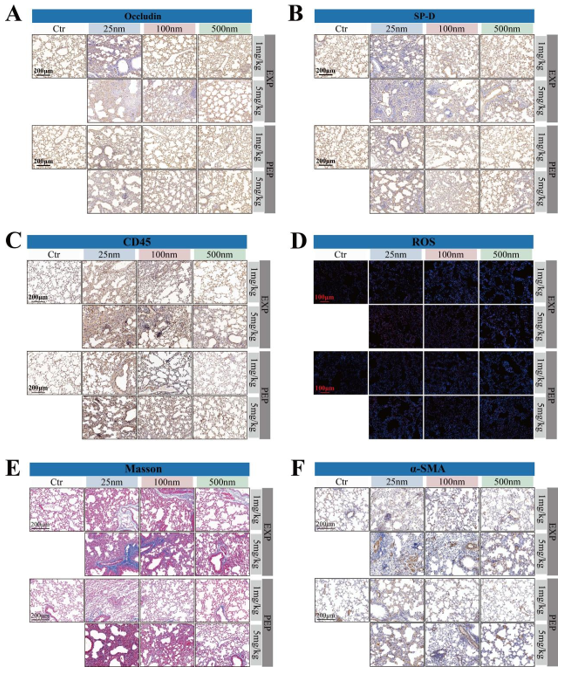 To investigate these questions, the study, led by Dr. XU Mingkai and Prof. LI Tiegang, established a mouse model of polystyrene nanoplastics (PS-NPs) inhalation exposure via intratracheal instillation. C57BL/6 mice (6–8 weeks old) were exposed to PS-NPs with particle sizes of 25, 100, and 500 nm. The experimental design included a 4-week exposure period (EXP) followed by a 2-week post-exposure period (PEP). Exposure doses were set at 1 mg/kg and 5 mg/kg.